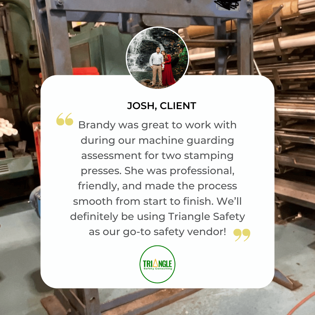 We recently had the honor of working with Josh during a machine guarding assessment for two stamping presses. Here’s what he had to say: