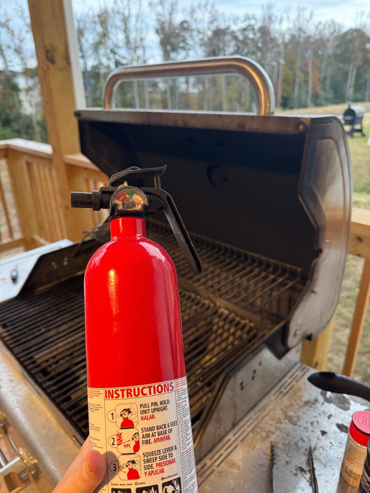 🍗 A fire started in our outdoor propane grill when we were cooking chicken thighs! 🔥 The fire was getting out of hand and wouldn’t go out by blowing it. So my husband told me he needed the fire extinguisher! 🧯 I pulled the pin, aimed at the base of the grill (under the grates), and squeezed (and swept a little bit). 👩🍳We keep our fire extinguisher and fire blanket under our kitchen sink, so it was easily accessible, and I was back outside within a few seconds of my husband saying he needed some assistance. 💲I highly recommend you purchase a fire extinguisher for your home. Ours is small and was about $20. 🫧🧽I also recommend that you clean the grease in your grill regularly. Grease build-up from previous grilling is likely why the fire started and wouldn’t go out. 🏡Have you ever had to use a fire extinguisher at home or at work? Tell me your stories! Any other grill fires?? Reply to this email and let us know!