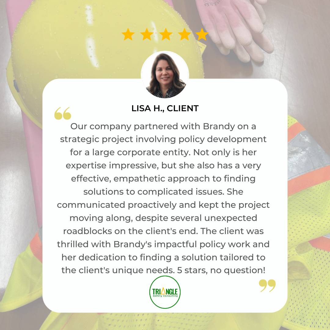 My name is Brandy and I am Triangle Safety Consulting LLC’s Owner and Principal Consultant. My passion is providing expertise and resources to help manufacturing facilities improve their safety program. 👷🏼♀️I am available to assist with helping you and your facility with anything safety-related!