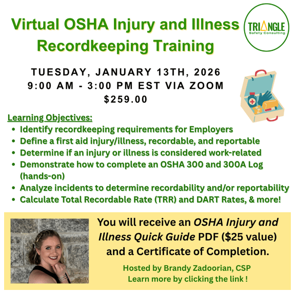 What virtual training topics would you like to see next? Your feedback helps us create sessions that deliver real value. Message us at Connect@TriangleSafetyLLC.com with your ideas or reply to this email. We’d love to hear from you!