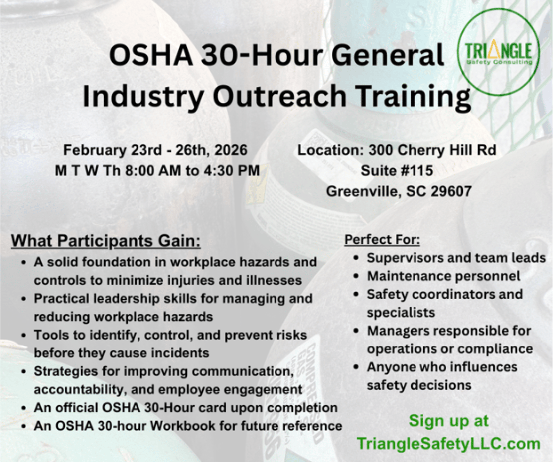 OSHA 10-Hour and 30-Hour Training in Greenville, SC